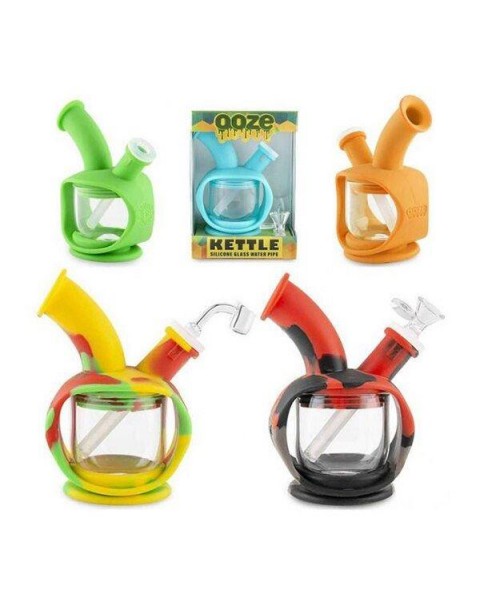 The Silicone Glass Kettle Bubbler, produced by Ooze, is a breath of fresh air for the casual smoker. This bong features a suction base that will hold your piece in place. .